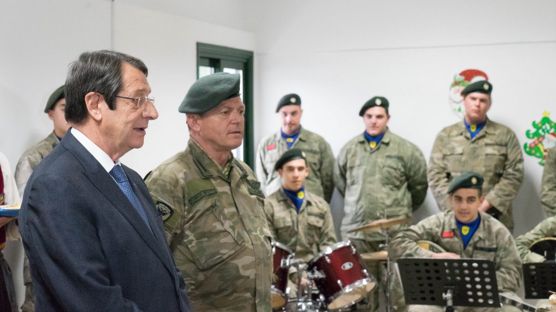 Με την ευκαιρία των εορτών των Χριστουγέννων και της Πρωτοχρονιάς, η ΑΕ ο Πρόεδρος της Κυπριακής Δημοκρατίας, η ΑΜ ο Αρχιεπίσκοπος Νέας Ιουστινιανής και Πάσης Κύπρου κκ. Χρυσόστομος Β’ και ο Υπουργός Άμυνας κ. Σάββας Αγγελίδης επισκέφθηκαν Μονάδες και υπηρεσίες της Εθνικής Φρουράς.