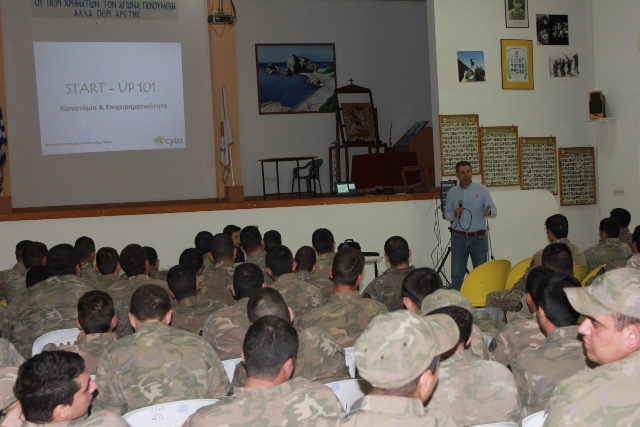 Σταθερή στη στήριξή της στους νέους και στον τομέα της καινοτομίας, η Cyta, σε συνεργασία με το Ανοικτό Πανεπιστήμιο Κύπρου (ΑΠΚΥ), την KPMG και το Υπουργείο Άμυνας, συμμετείχε στην πραγματοποίηση ημερίδας που έγινε στο ΚΕΝ Πάφου στην παρουσία του Υπουργού Άμυνας κ. Χριστόφορου Φωκαΐδη, με κοινό στόχο την προώθηση της νεανικής επιχειρηματικότητας ανάμεσα στους στρατευμένους νέους μας.