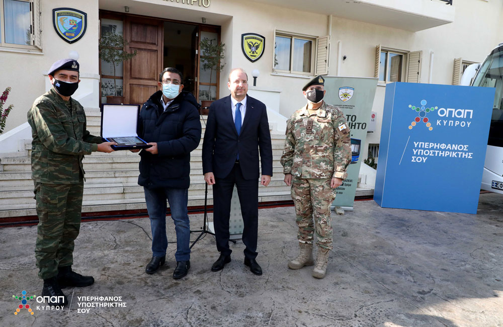 Ανταποκρινόμενη σε σχετική παράκληση του Υπουργείου Άμυνας, η ΟΠΑΠ Κύπρου πρόσφερε στην ΕΛΔΥΚ ένα υπερσύγχρονο λεωφορείο (αξίας 220,000 ευρώ,) για τις ανάγκες διακίνησης του προσωπικού της Δύναμης.