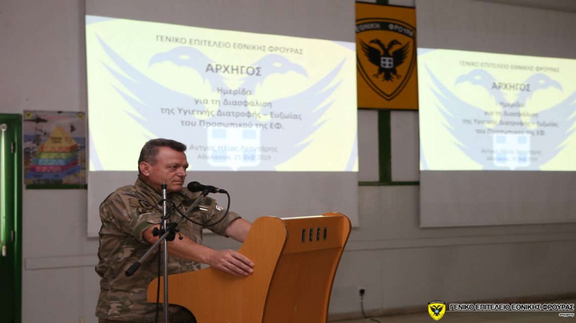 Ημερίδα με θέμα «Διασφάλιση της Υγιεινής Διατροφής – Ευζωίας του Προσωπικού της Εθνικής Φρουράς» πραγματοποιήθηκε τη Δευτέρα 25 Φεβρουαρίου 2019, στο Στρατόπεδο ‘’Χρήστου Σαμάρα’’.