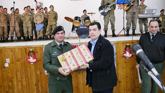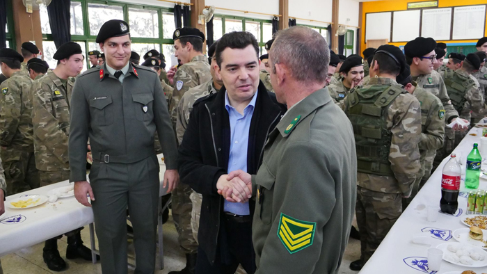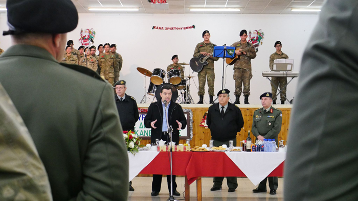 O Υπουργός Άμυνας, αφού άκουσε τα κάλαντα από τους εθνοφρουρούς, εξέφρασε τις ευγνώμονες ευχαριστίες της πολιτείας προς όλο το προσωπικό, μόνιμα στελέχη και κληρωτούς, γιατί, όπως είπε, υπηρετούν το ύψιστο αγαθό της ελευθερίας, υπερασπιζόμενοι την άμυνα και την ασφάλεια της χώρας.