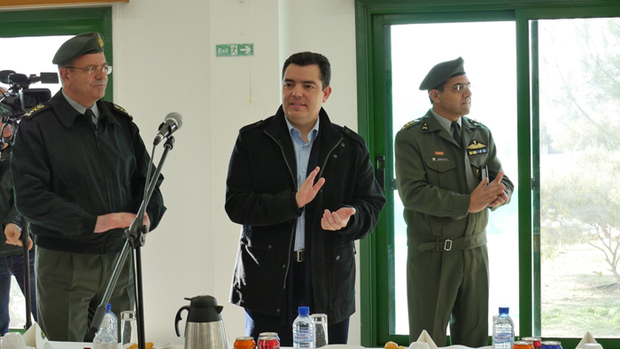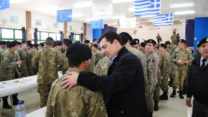 Ο Υπουργός Άμυνας κ. Χριστόφορος Φωκαΐδης, συνοδευόμενος από τον Αρχηγό της Εθνικής Φρουράς Αντιστράτηγο Γεώργιο Μπασιακούλη, επισκέφθηκε τα στρατόπεδα της Εθνικής Φρουράς στο Δελίκηπο και τον Κόρνο, καθώς και φυλάκιο στην περιοχή Αγλαντζιάς, στα πλαίσια των επισκέψεών του με την ευκαιρία των εορτών.