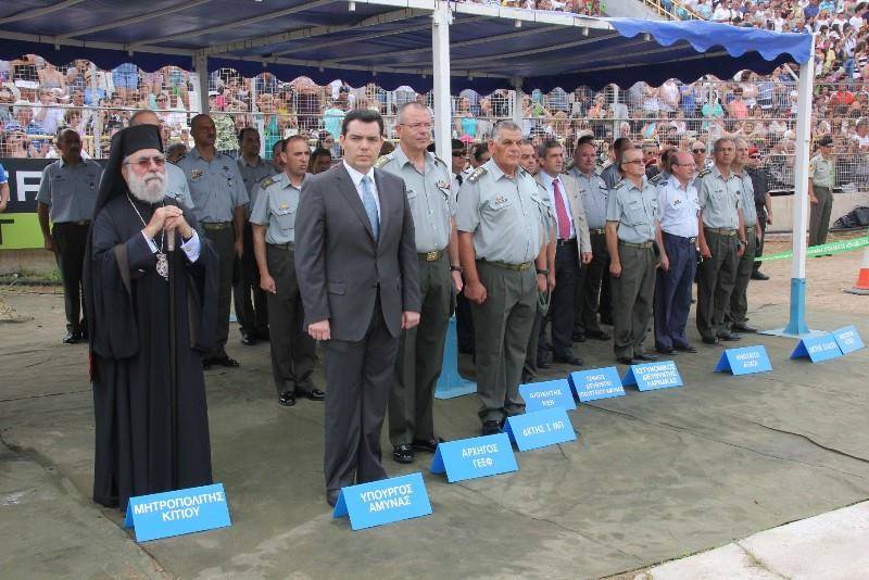 Ο Υπουργός Άμυνας κ. Χριστόφορος Φωκαΐδης, συνοδευόμενος από τον Αρχηγό της Εθνικής Φρουράς Αντιστράτηγο Γεώργιο Μπασιακούλη, παρακολούθησε την Παρασκευή 31/7/15, στο νέο στάδιο «ΓΣΖ» στη Λάρνακα, την επίσημη τελετή ορκωμοσίας των νεοσύλλεκτων οπλιτών της 2015 Β΄ ΕΣΣΟ του Κέντρου Εκπαίδευσης Νεοσυλλέκτων (ΚΕΝ) Λάρνακας.