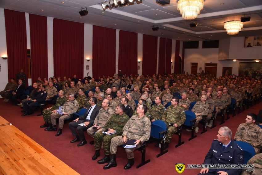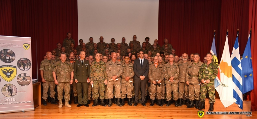 Ο Αρχηγός του ΓΕΕΦ, Αντιστράτηγος Ηλίας Λεοντάρης, στο χαιρετισμό του υπογράμμισε τη σπουδαιότητα των θεσμών της Εφεδρείας και της Εθνοφυλακής για την ΕΦ. Επεσήμανε ότι η ΕΦ, αναγνωρίζοντας αυτή τη σπουδαιότητα, ανακήρυξε το 2018 ως «Έτος Εφεδρείας και Εθνοφυλακής» προκειμένου αφενός να αναδείξει την πολύτιμη προσφορά τους και αφετέρου να διερευνήσει τους τρόπους που θα οδηγήσουν στη βέλτιστη αξιοποίησή τους, μέσα από την περαιτέρω ενεργή συμμετοχή. Ευχαρίστησε τα Γενικά Επιτελεία Εθνικής Άμυνας και Στρατού της Ελλάδας για την συνεργασία που διατηρούν επί του θέματος των δύο θεσμών και ενθάρρυνε την περαιτέρω συνεργασία μεταξύ των Διευθύνσεων Εφεδρείας και Εθνοφυλακής του ΓΕΕΦ και του ΓΕΣ.